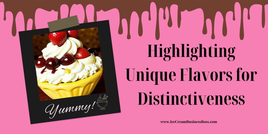 The ability to stand out becomes crucial for any company in today’s crowded market, when options abound and competition is severe. This differentiation for ice cream exists not just in terms of flavor, but also in terms of innovation. A variety of inventive and distinctive flavors could help your company stand out from the competition. It becomes crucial to highlight these outstanding offerings when you start the process of developing slogans so that they become the focal point of your marketing story.