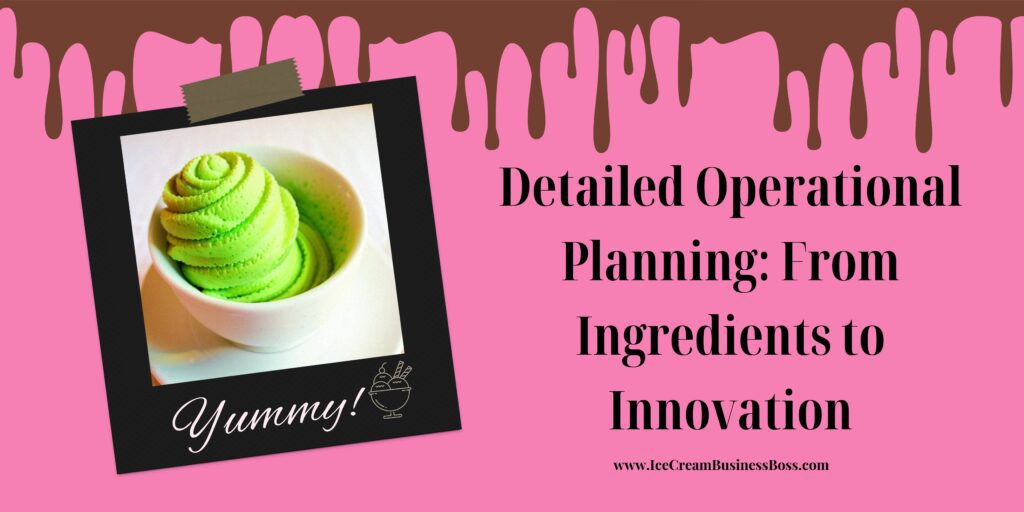 The complicated web that connects the broad goals of your ice cream company strategy with the specifics of everyday implementation is operational planning. The focus in this area switches from intellectual genius to the painstaking choreography of day-to-day operations, where accuracy and efficiency are the key choreographers.