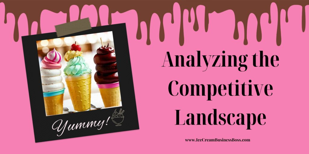 Analyzing the competitive landscape entails researching current ice cream shops in your area to determine their strengths and shortcomings. This evaluation assists you in differentiating your shop by providing something distinctive, whether it’s a great flavor, a creative presentation, exceptional customer service, or a mix of elements. Understanding your competition allows you to position your store in the market.