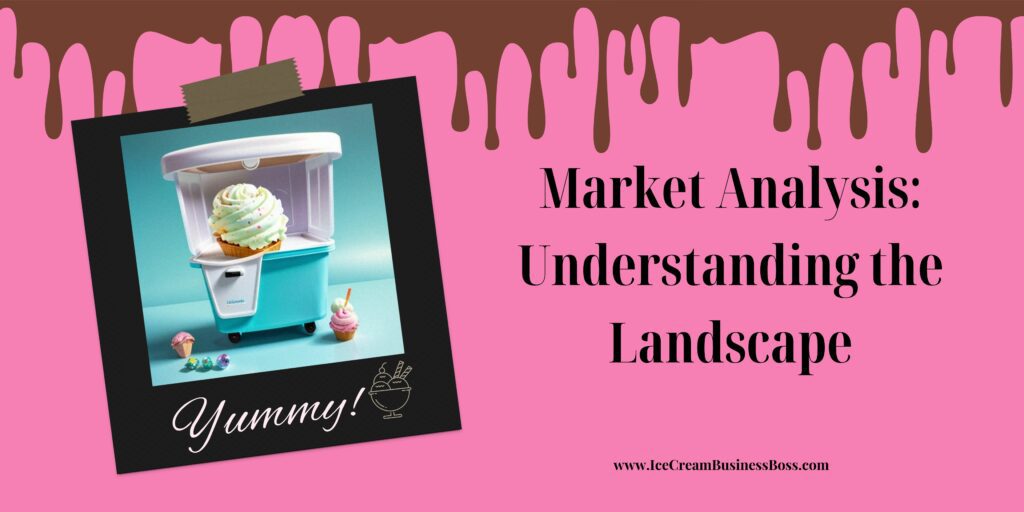 A thorough market analysis is essential to the growth of your business plan in the complex ice cream industry. This crucial step is thoroughly researching your local and regional ice cream markets, learning about your rivals, and finding the market’s hidden prospects.