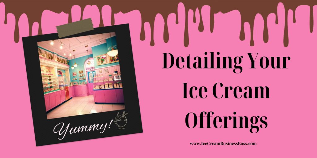 Another important factor for your ice cream selections is seasonality. Will you change your menu seasonally to reflect the various holidays and seasons, or will you stick to the same selections all year long? Promote your approach’s adaptability as a selling factor.