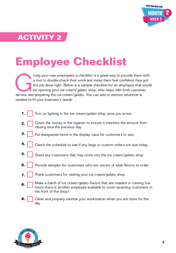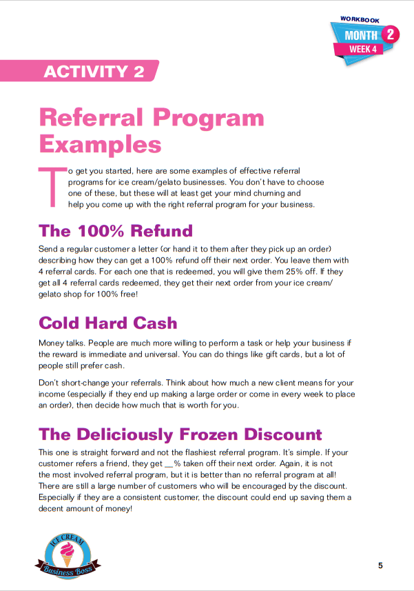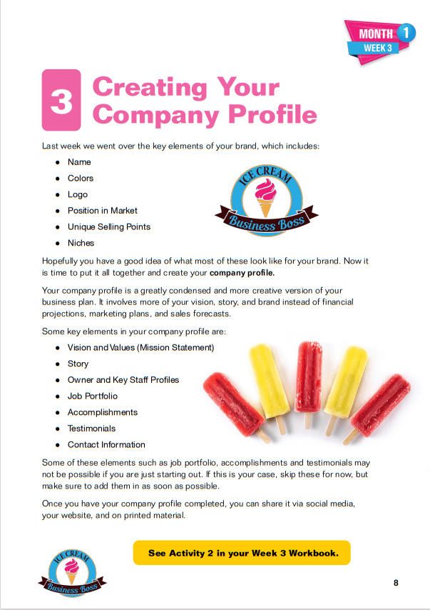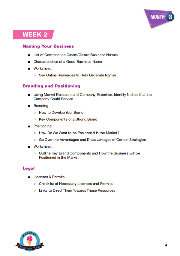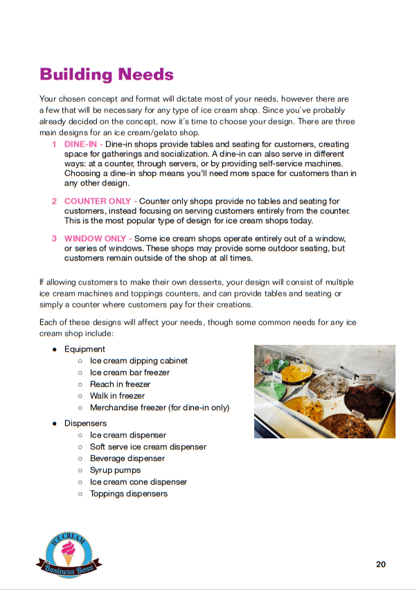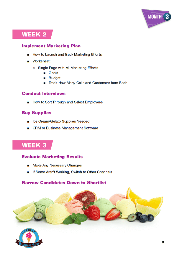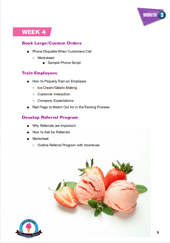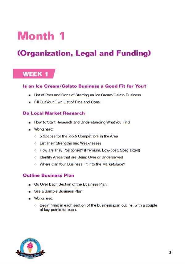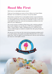 How to Start an Ice Cream/Gelato Shop Course and Workbook Sample Pages. Click on Images to Enlarge.