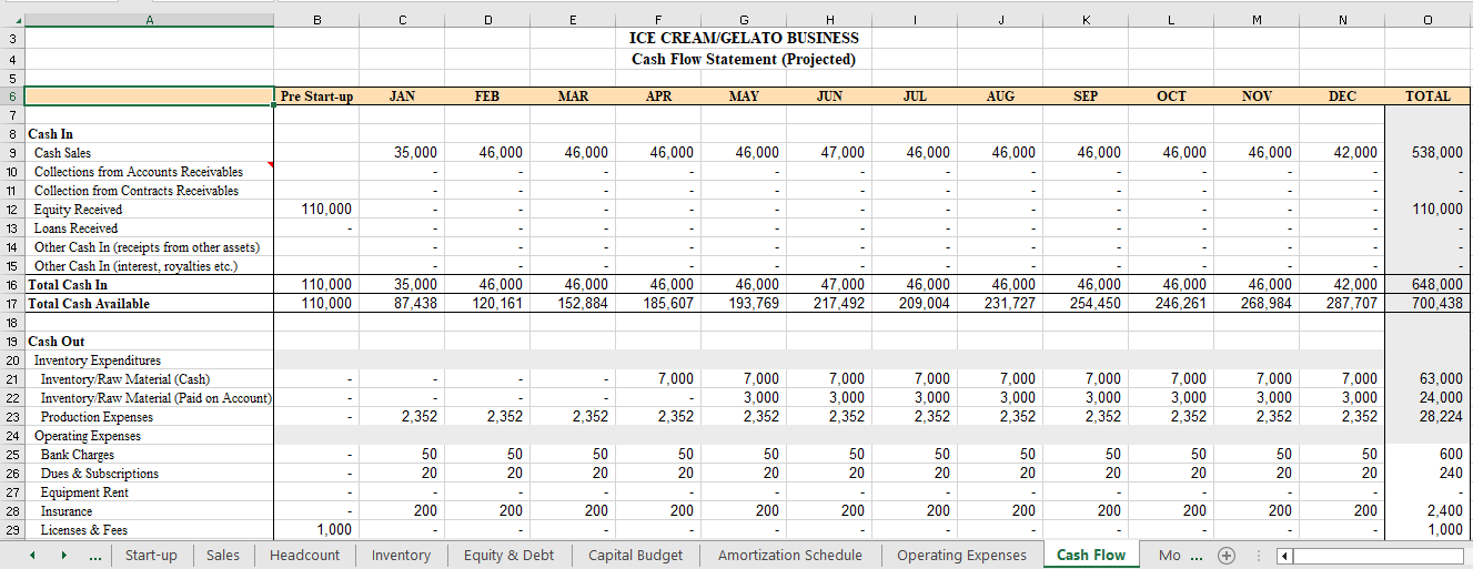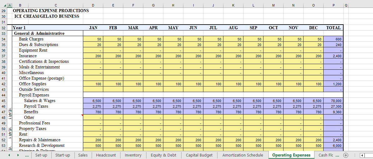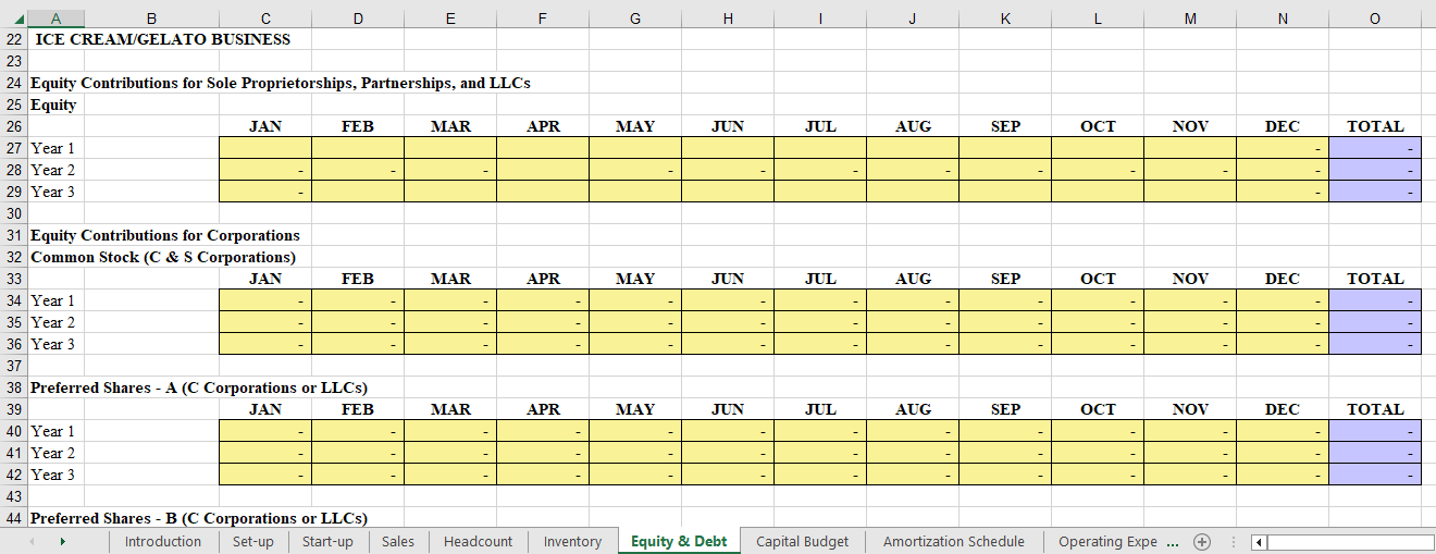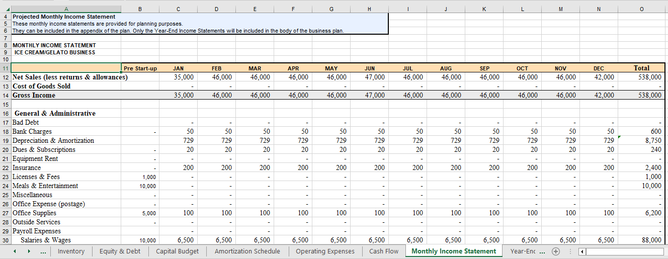 Ice Cream/Gelato Business Excel Fill-In-the-Blank Financial Worksheet with instructions to help you calculate your finances Sample Pages. Click on Images to Enlarge.