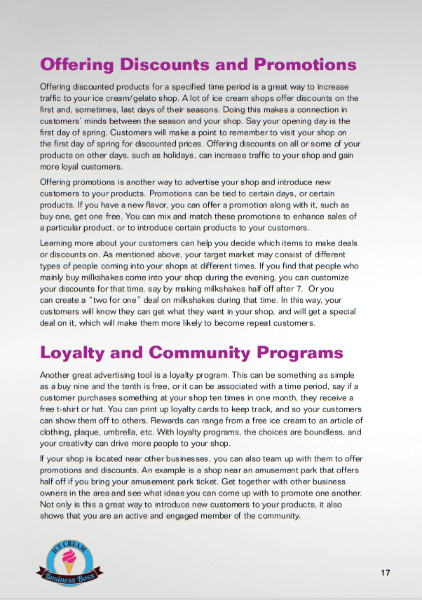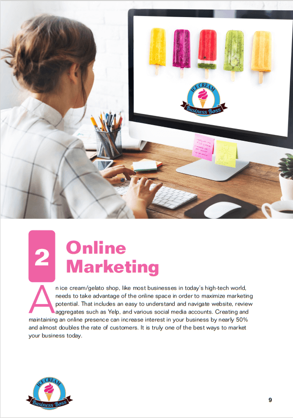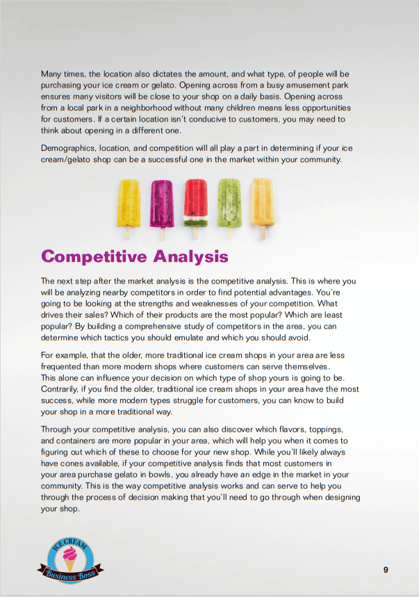 Marketing Your Ice Cream Business: How to Best Market Your Ice Cream/Gelato Shop Sample Pages. Click on Images to Enlarge.