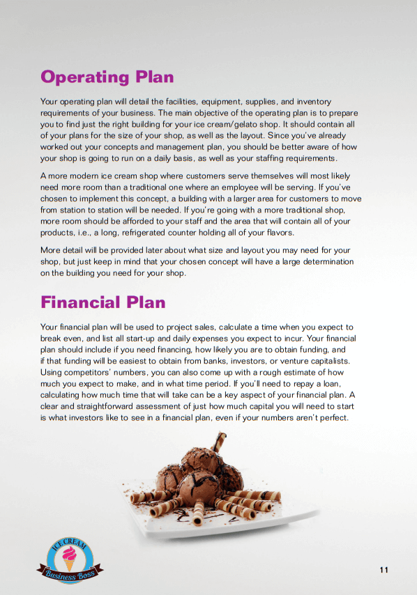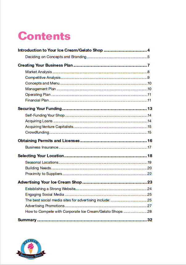How To Start An Ice Cream/Gelato Shop Sample Pages. Click on Images to Enlarge.