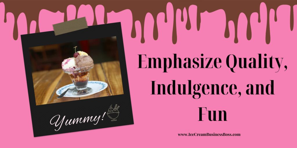 Consider your taglines as poetic entrances into the world you’ve created within your ice cream offerings as you carefully write them. A symphony of tantalizing flavors should be conjured up by the melody of the words as they dance on the tongue. Every phrase must ring with the sensual enticement of textures, offering an extraordinary experience of adventure.