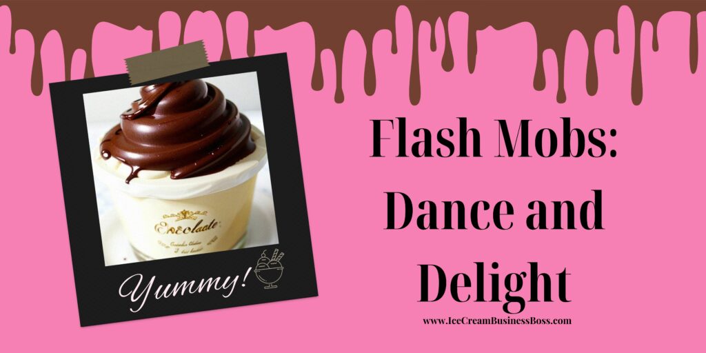 Flash mobs add an element of surprise to public settings by conducting unexpected ice cream-related acts. These engaging and coordinated routines draw attention, boost social media sharing, and foster a sense of community among viewers, resulting in enhanced brand visibility and a memorable customer experience.