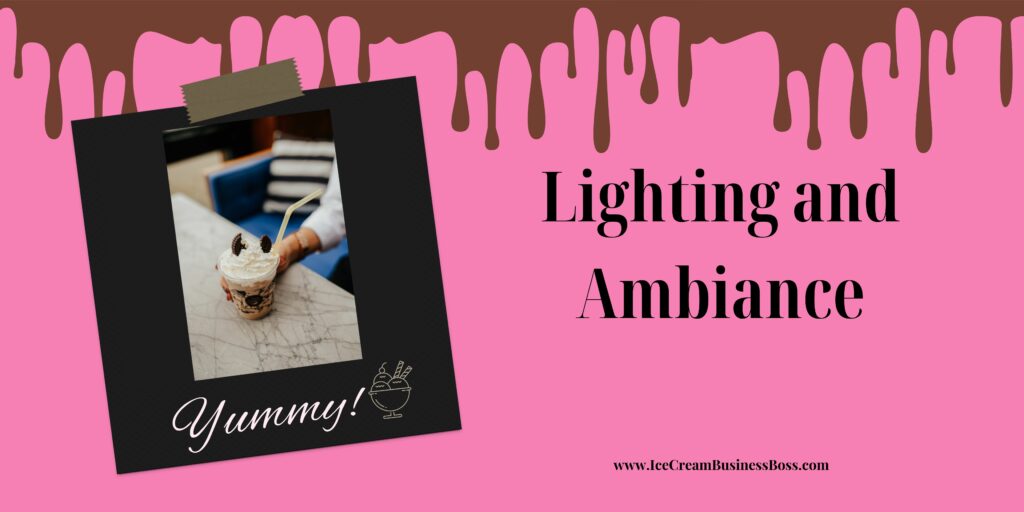 How important is lighting in the overall design of an ice cream shop?